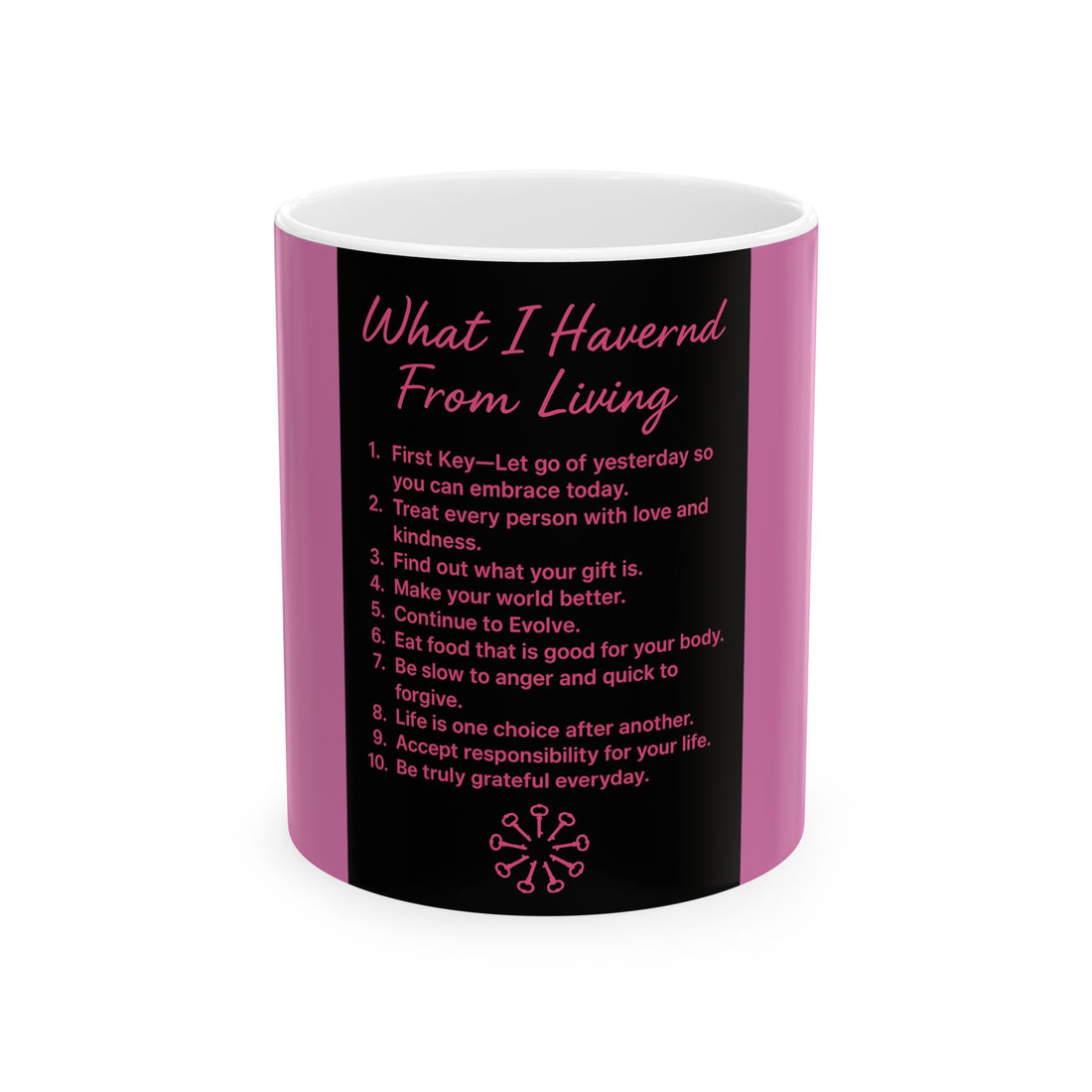 Inspirational 'What I Learned From Living' Ceramic Mug (11oz/15oz) — Motivational Quote Coffee Cup