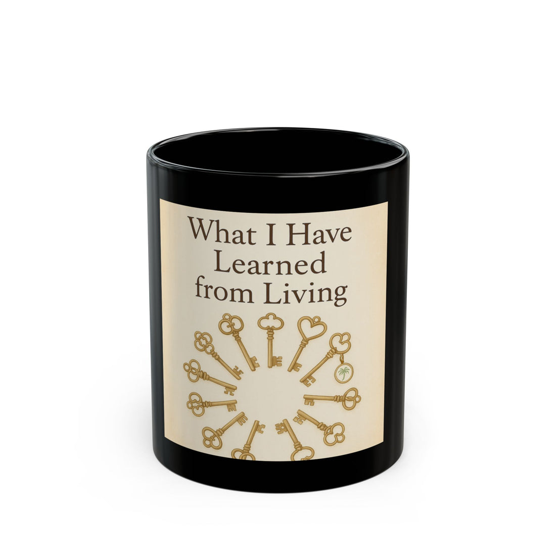 Inspirational Key Design Mug – "What I Have Learned from Living" Black Coffee Cup (11oz/15oz)